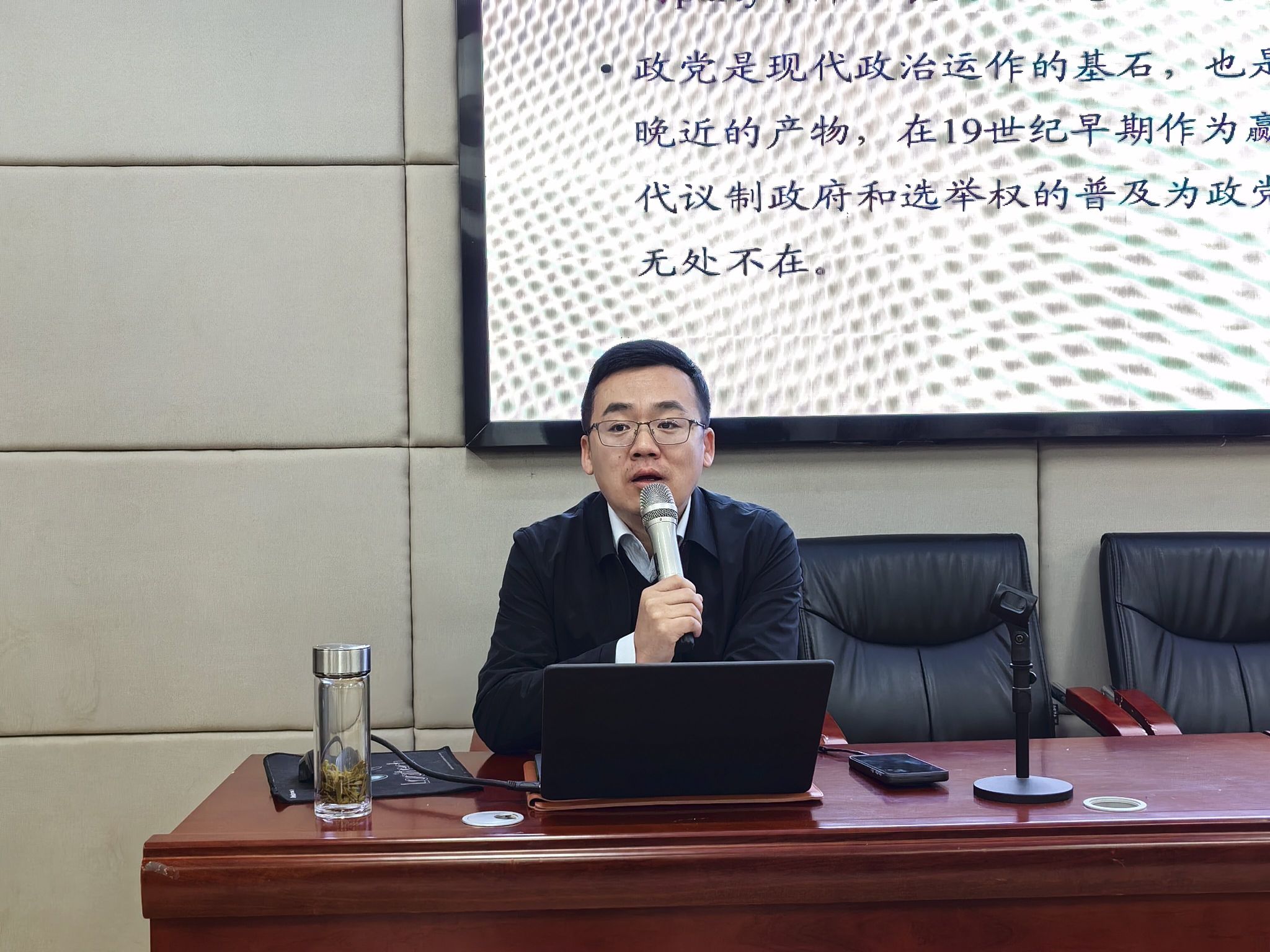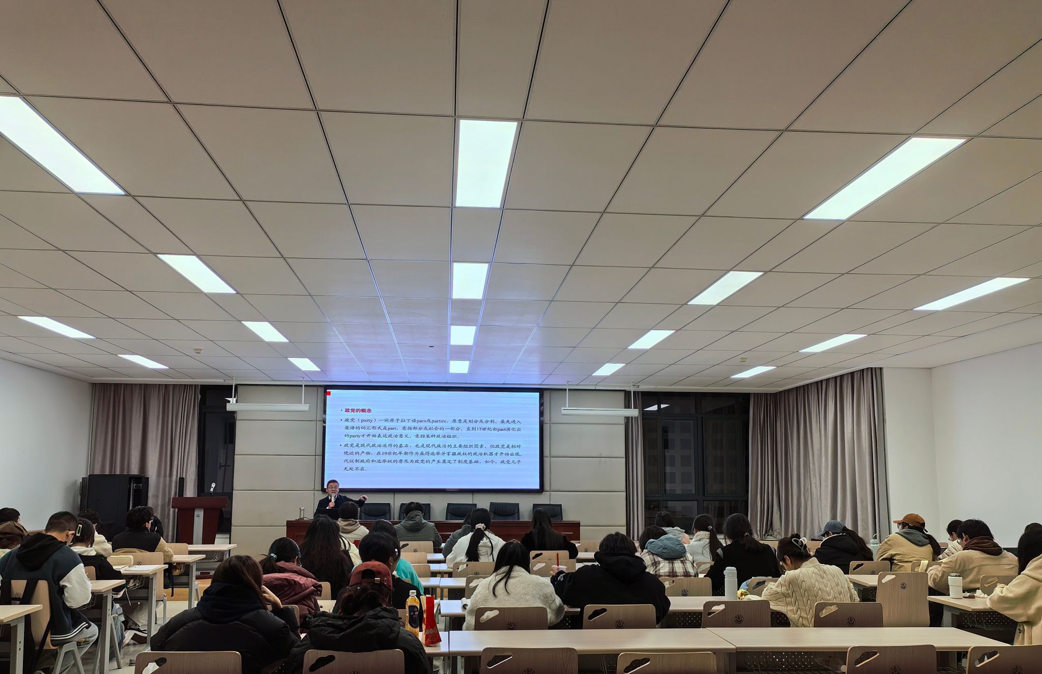 本网讯 10月28日下午,政法与公共管理学院在学院212会议室举行第67期入党积极分子党课第五讲,本次党课主题为“新时代党的建设新的伟大工程。”本次党课由学院副院长肖龙授课。