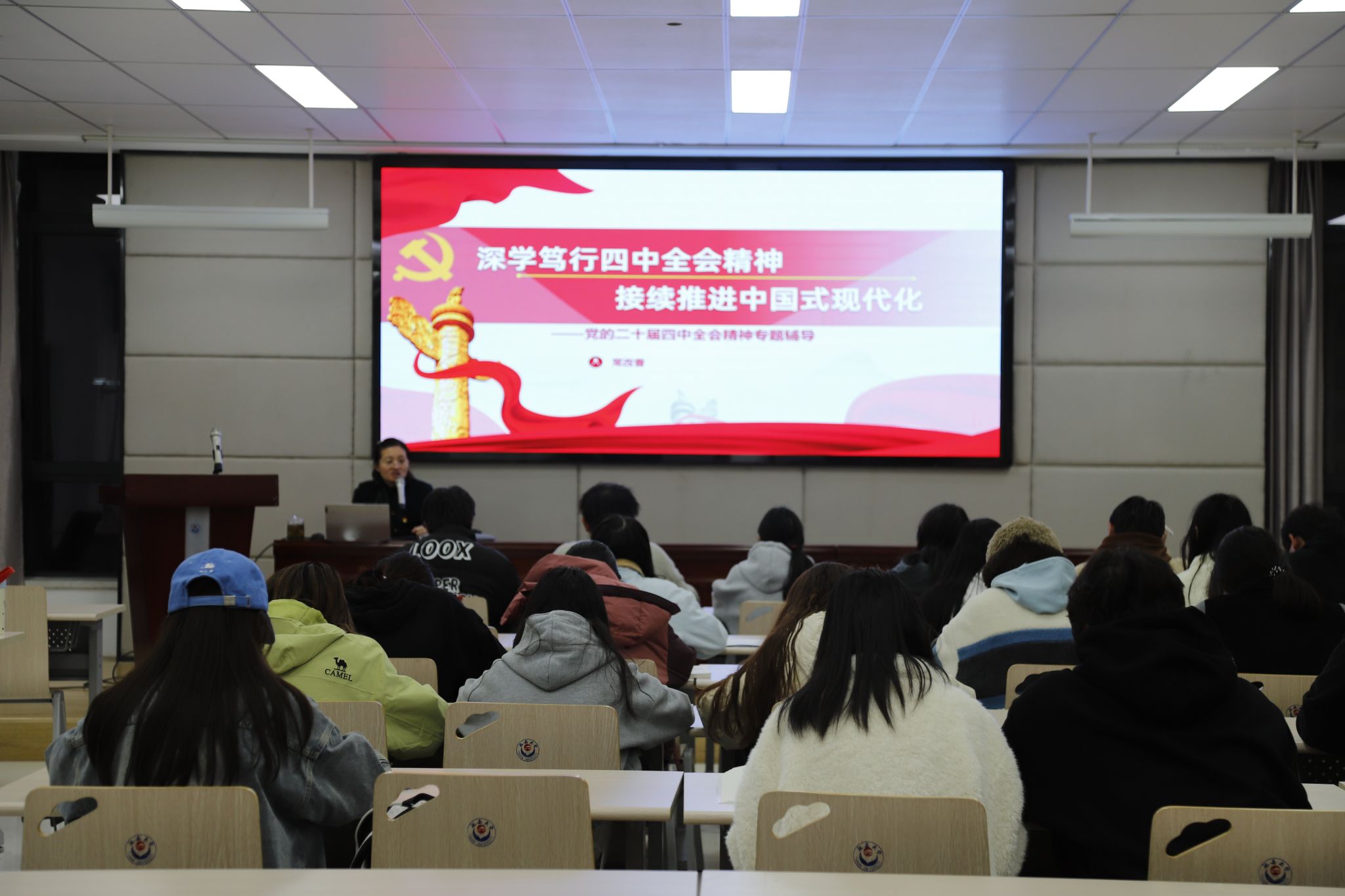 本网讯 10月29日晚上,政法与公共管理学院在学院212会议室举行第67期入党积极分子党课第六讲,本次党课主题为“党的二十届四中全会精神专题解读。”本次党课由学院院长常改香授课。
