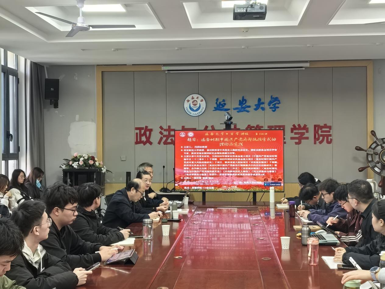 本网讯 10月13日下午,西安财经大学闫团结教授做客政管学院第114期“公学讲坛”,作了题为《延安时期中国共产党局部执政方式的理论与实践》的专题讲座。讲座由常改香院长主持,党史专业部分教师、研究生和本科生参加。