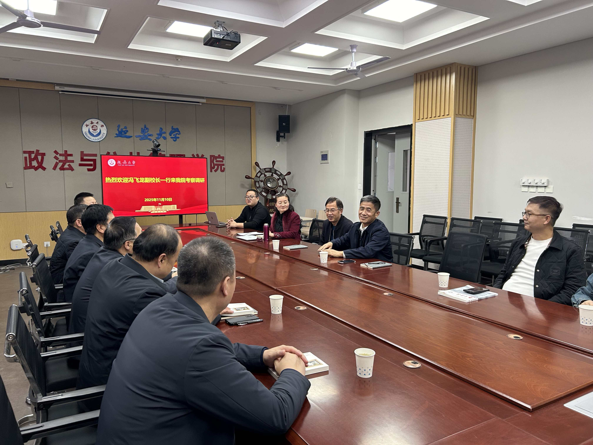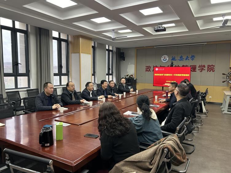 本网讯 2025年11月10日下午3点,宝鸡文理学院副校长冯飞龙一行赴延安大学政管学院开展座谈交流会。我校党委副书记杨伟宏、政管学院党委书记崔林立、院长常改香等十余位教师代表及学生代表参会。此次座谈旨在推动两校之间学科建设、科研合作与人才培养等方面的深度对接。