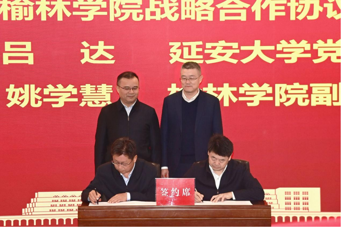 会上,延安大学与榆林学院举行了战略合作协议签约仪式,在奚家米、康伟的共同见证下,吕达、姚学慧分别代表延安大学、榆林学院签约。