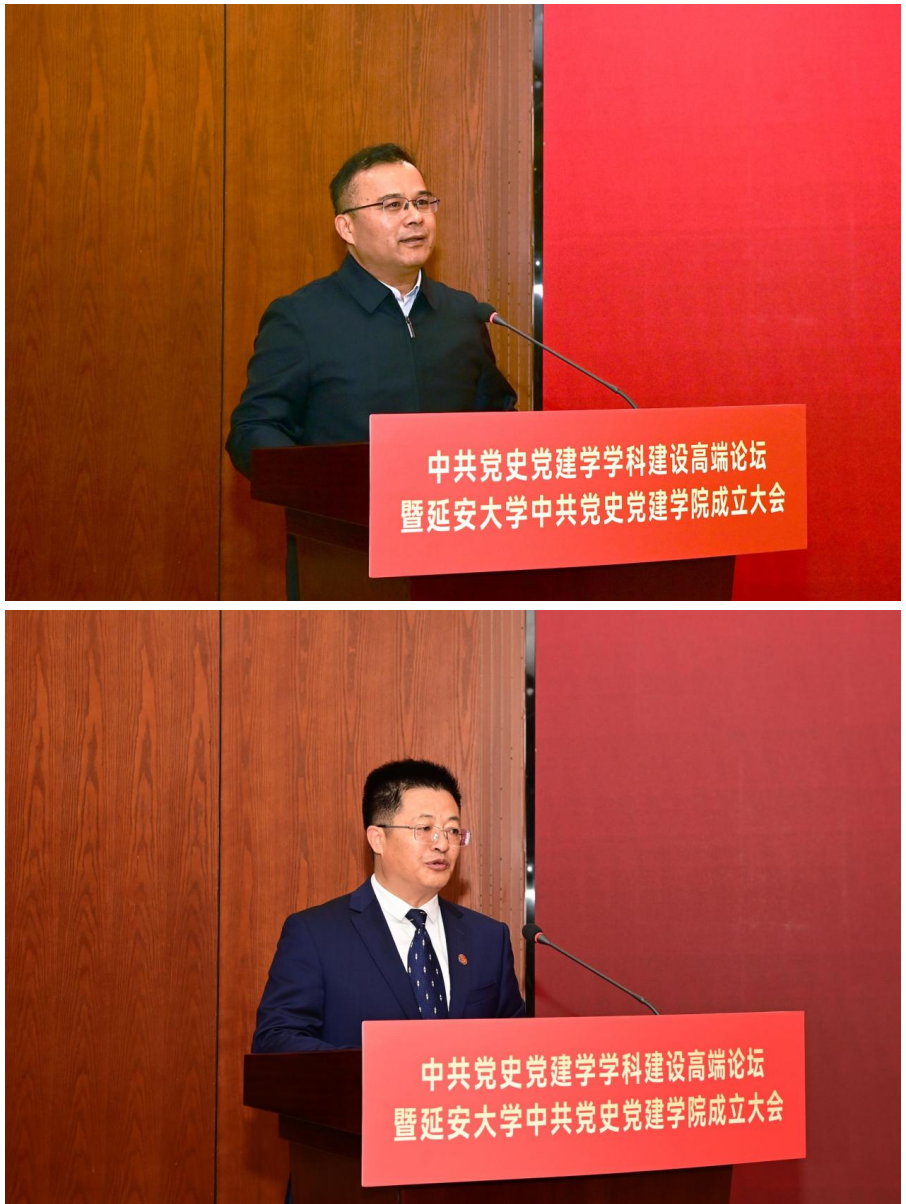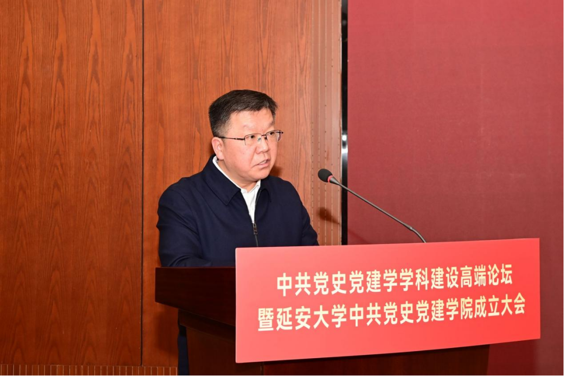 本网讯 10月18日,由延安大学主办,延安大学学科建设与发展规划处、延安大学教务处、延安大学政法与公共管理学院、延安十三年与中国式现代化研究院、教育部人文社科重点研究基地延安大学中国共产党革命精神与文化资源研究中心承办的中共党史党学学科建设论坛暨延安大学中共党史党建学院成立大会在我校举行。延安大学校长奚家米,延安市人民政府副市长王云祥,中国中共党史学会副会长、中国人民大学中共党史党建学院院长杨凤城,榆林学院校长康伟,榆林学院副校长姚学慧,延安大学党委副书记吕达,延安大学副校长谭虎娃等出席。来自北京大学、中国人民大学、南京大学、北京理工大学、武汉大学和延安大学等33所高校的200余名学者与会。