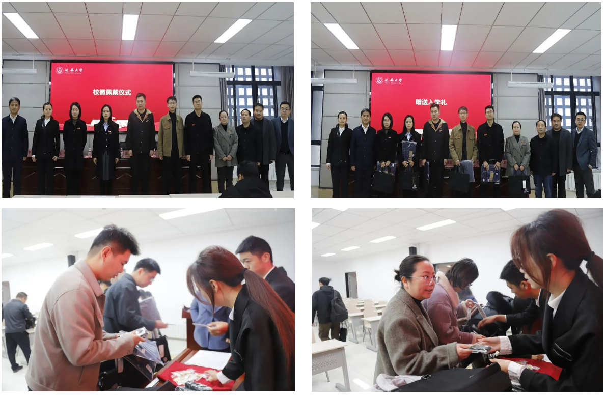 典礼设置特色环节,学院领导为新生代表佩戴校徽,并向新生代表赠送印有学院标识的文化衫与公文包作为入学礼物,以此强化新生的身份认同。