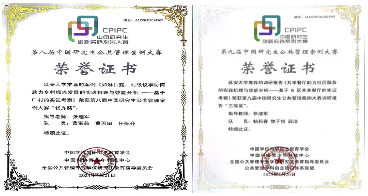 通过系统教学夯实理论基础、真实案例强化理论认知、专项研究推动理论发展,依托从陕西省公共管理研究生案例大赛到中国研究生公共管理案例大赛的阶梯式竞赛平台,实现“以赛促学、以赛提能”。MPA教育中心高度重视案例大赛的组织培育工作,积极制定面向师生的案例编写激励措施和办法。推出优秀案例参加案例大赛,近三年先后获中国研究生公共管理案例大赛调研报告三等奖1项、优秀奖1项,陕西省公共管理案例大赛一等奖1项、二等奖1项、三等奖3项。