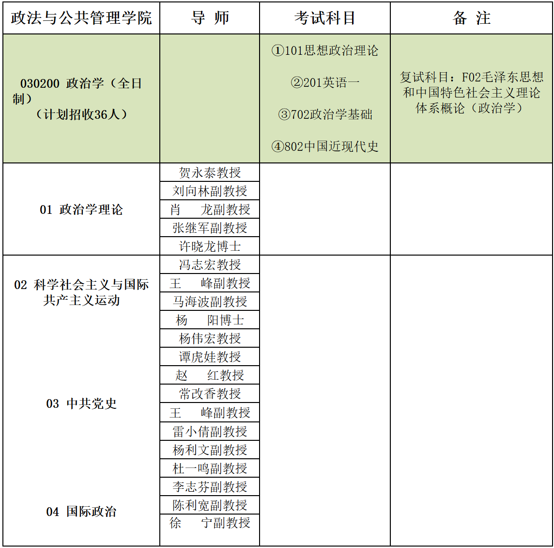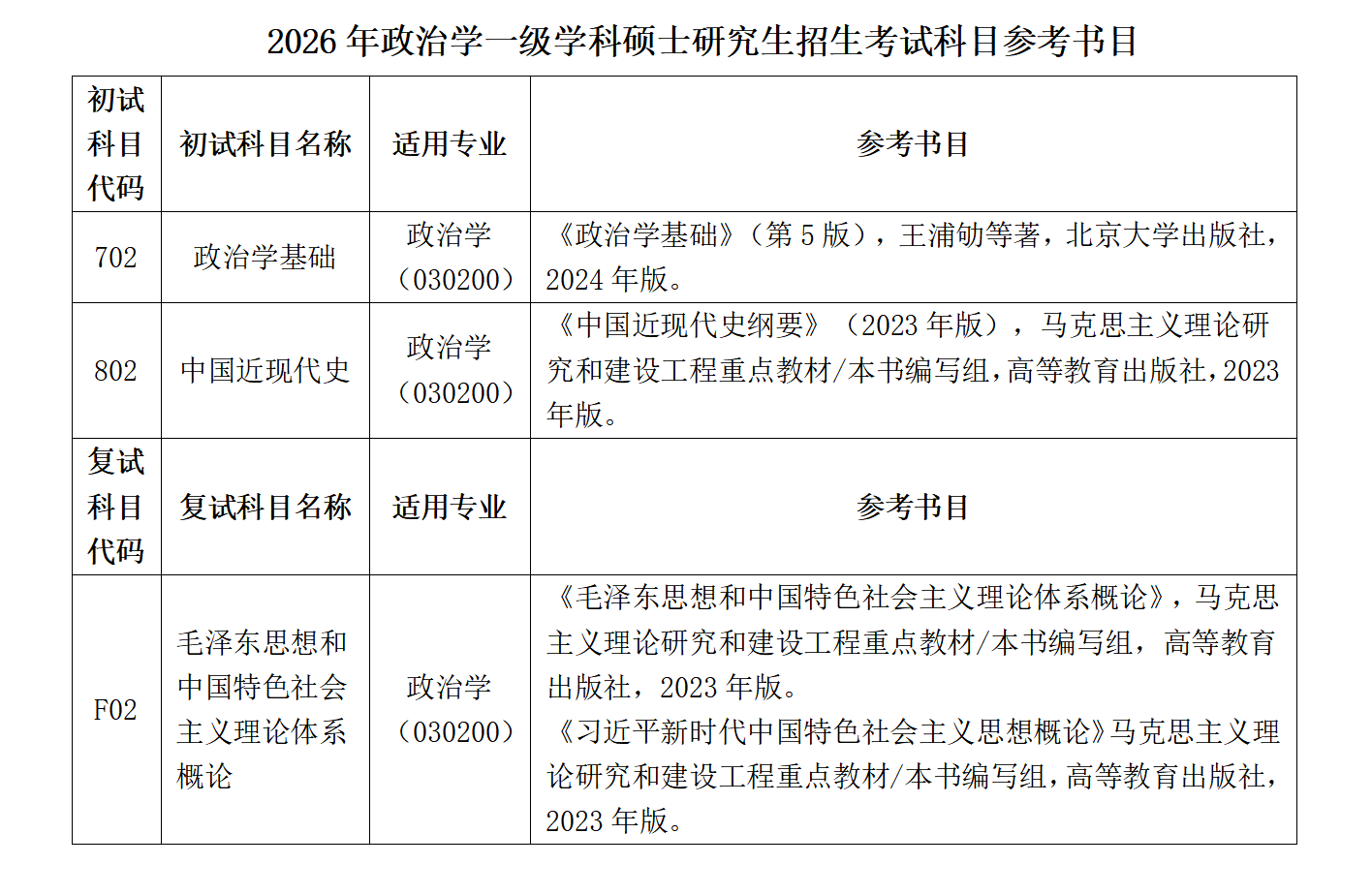 2026年政治学一级学科硕士研究生招生专业和导师目录