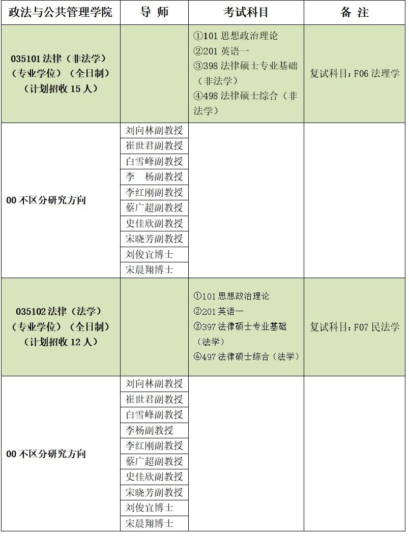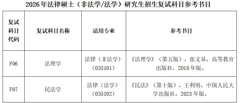 2026年法律硕士(非法学/法学)研究生招生专业和导师目录