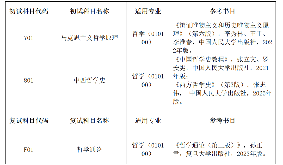 2026年哲学一级学科硕士研究生招生考试科目参考书目