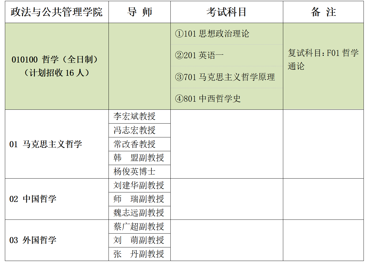 2026年哲学一级学科硕士研究生招生专业和导师目录