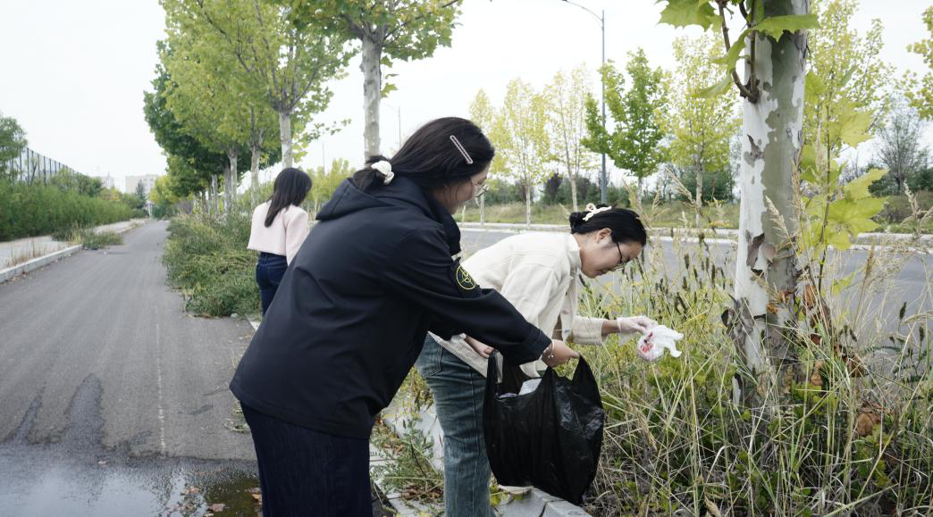 本次活动聚焦校园卫生重点区域,党员同志们以操场闸门口至菜鸟驿站的干道为清理范围,手持垃圾袋、夹子等工具,分工协作、有序行动。大家仔细清理路面及两侧绿化带内的塑料瓶、废纸屑、零食包装袋等各类垃圾,对隐藏在草丛、角落中的细小杂物逐一排查、彻底清扫。过程中,党员们充分发挥先锋模范作用,不怕脏、不怕累,以实际行动诠释责任与担当,形成了一道靓丽的“红色风景线”,也带动了过往师生自觉维护校园环境的意识。