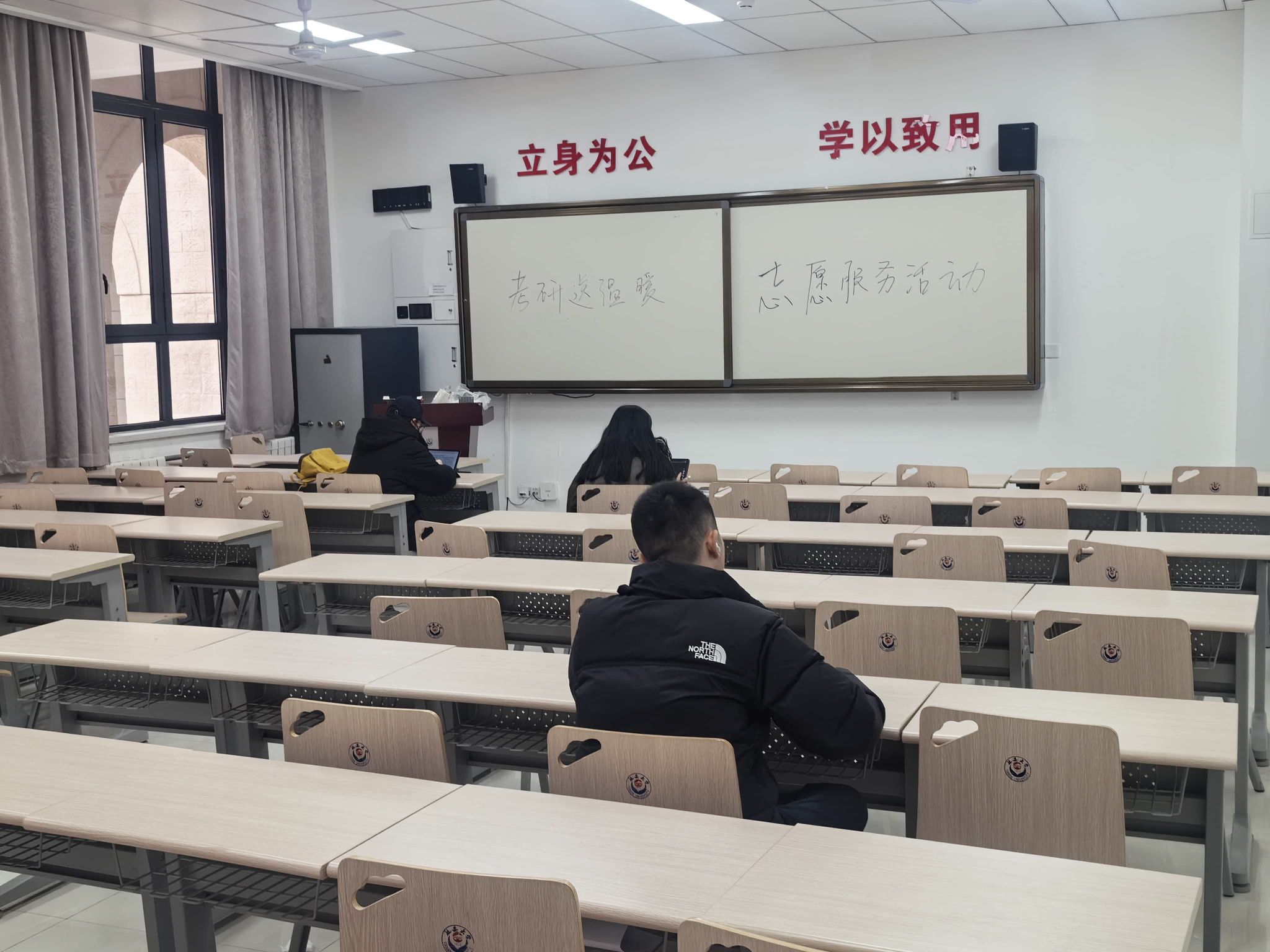 本次活动重点围绕环境保障与物资支持两个层面有序开展。活动开始,党员同志将105、106教室设立为考研学生专用休息室,在黑板上写下活动主题,为长时间复习或考试间隙需要短暂休息的同学提供了安静、舒适的独立空间。