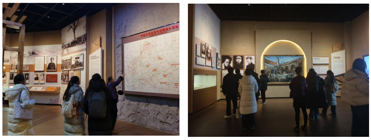在延安文艺纪念馆,丰富的文物展品、生动的场景复原与详实的文字史料构成了一幅立体的红色文艺画卷。同学们在侯路老师的引导下,系统了解延安时期文艺创作的蓬勃景象与重大成就,重点学习了文艺工作者深入群众、服务革命的实践路径。从文学、戏剧到音乐、美术,各类文艺成果背后的革命精神与人民立场,让同学们对“文艺为工农兵服务”的方针有了更深刻的认知。