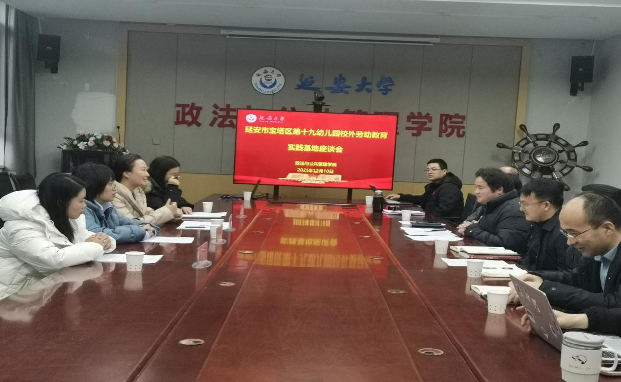 本网讯 为深化校地合作,协同推进劳动教育实践创新,2025年12月10日下午,政管学院与延安市宝塔区第十九幼儿园在318会议室举行校外劳动教育实践基地签约授牌仪式。双方通过座谈交流、签署协议、授牌仪式等环节,就资源共享、课程共建、实践协同等内容达成合作共识,共同探索“校—园—社”联动的育人新路径。