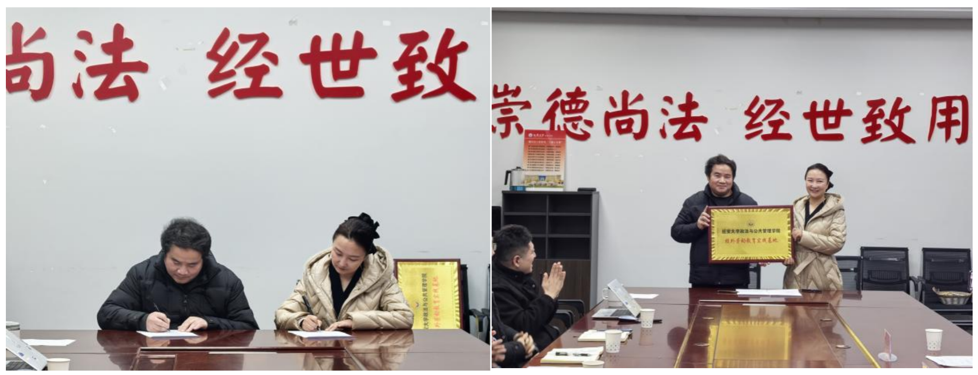 签约授牌仪式上,政管学院副院长张继军与幼儿园园长贺香瑜分别致辞,介绍了各自单位在教育教学与实践育人方面的特色与成效。随后,双方正式签署合作协议,并为“延安大学政法与公共管理学院校外劳动教育实践基地”授牌。此举标志着双方在劳动教育领域的合作进入制度化、常态化新阶段,为大学生参与社会实践和幼儿园丰富教育活动搭建了优质平台。