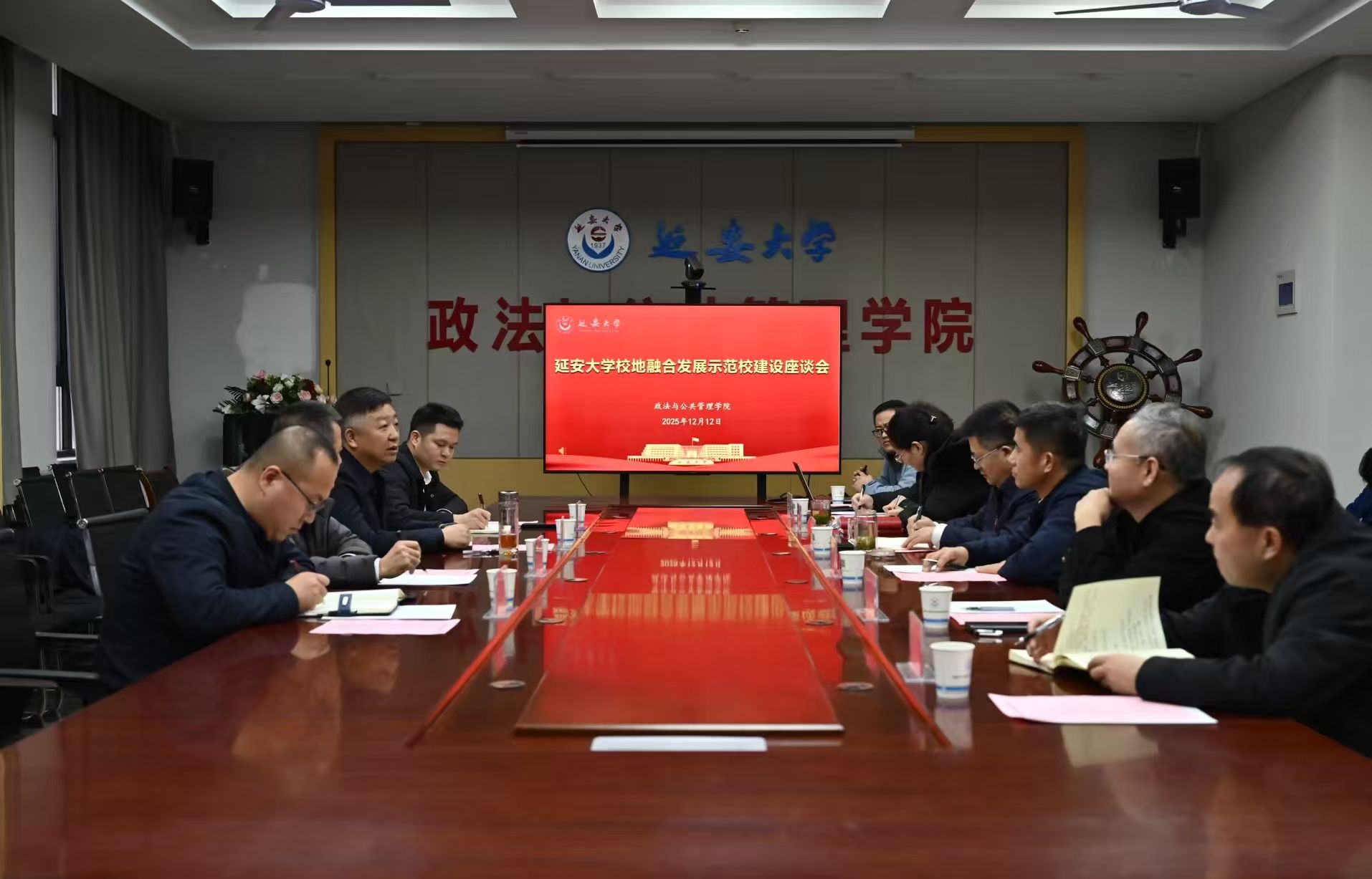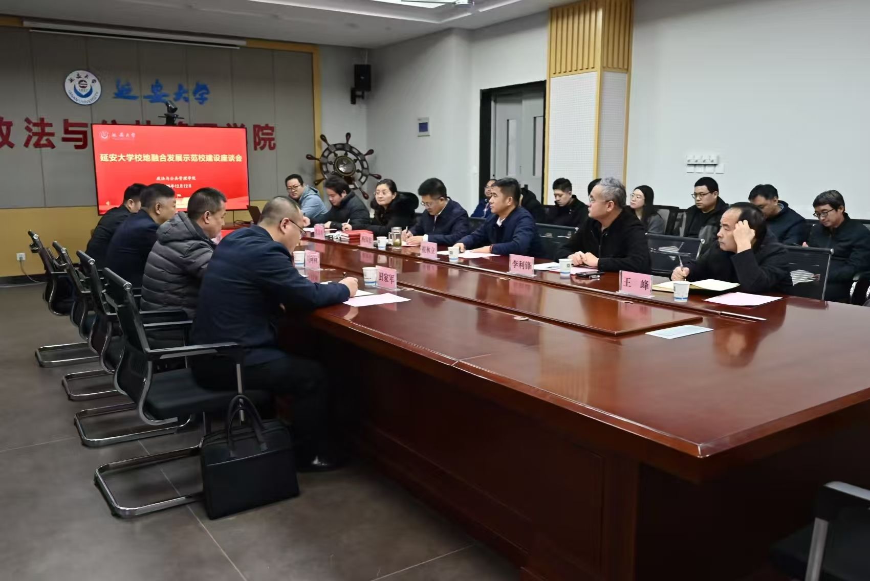 本网讯 为深入推进校地融合示范校建设,创新法治人才培养机制,12月12日11:30分,在政管学院318会议室举行与延安市中级人民法院校地融合发展建设座谈会,围绕法学教育、科研协作、实践基地建设等议题展开深入研讨。会议由崔林立书记主持,延安市中级人民法院党组书记、院长刘群、延安市中级人民法院副院长刘向林、延安市中级人民法院研究室副主任朱前旭、田家军、延安大学党委副书记杨伟宏、政管学院党委书记崔林立、政管学院院长常改香、及全体领导班子、行政人员、部分系主任、法学专业的教师代表参加。