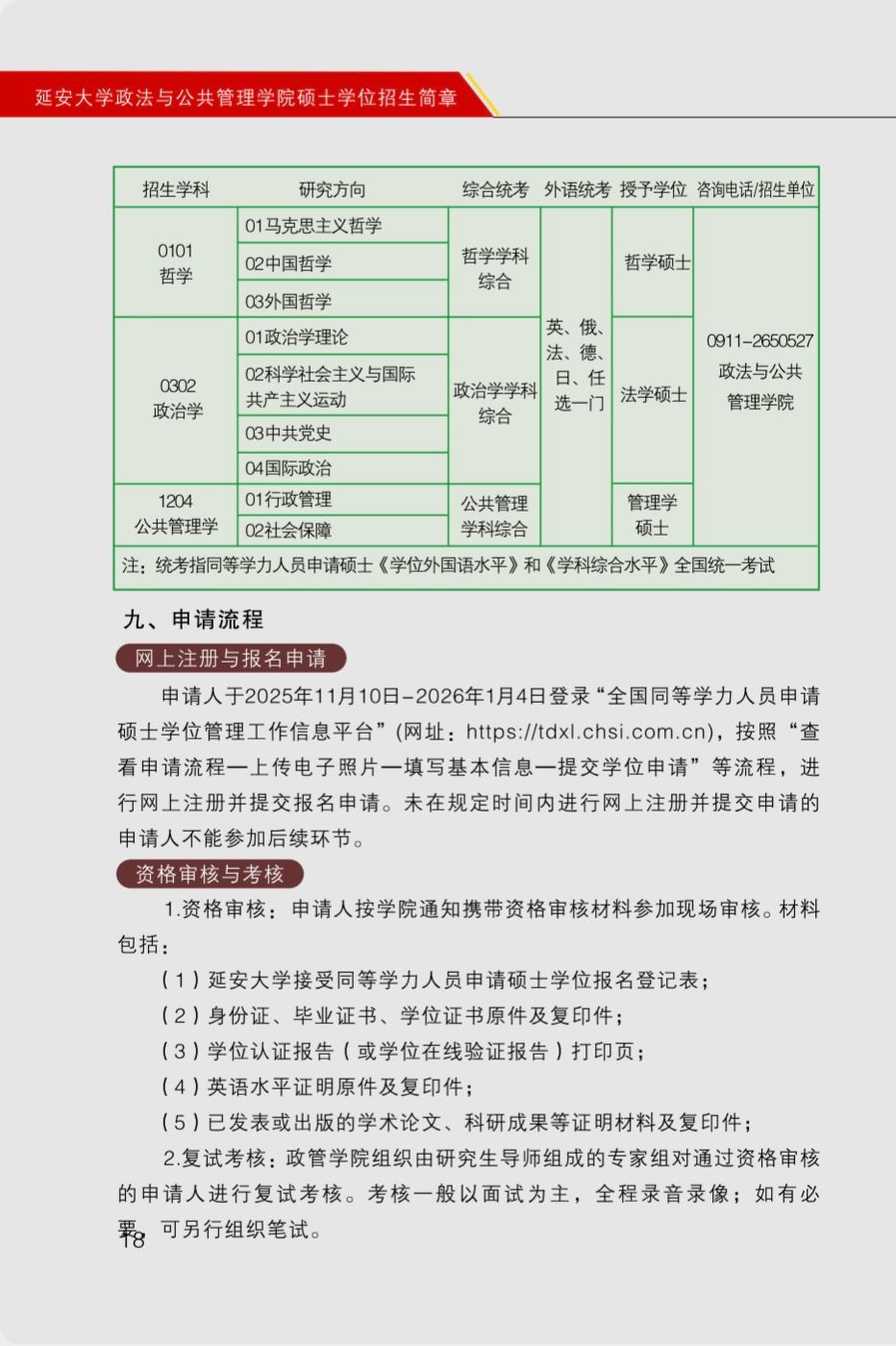 延安大学政法与公共管理学院2026年具有研究生毕业同等学力人员申请硕士学位招生简章