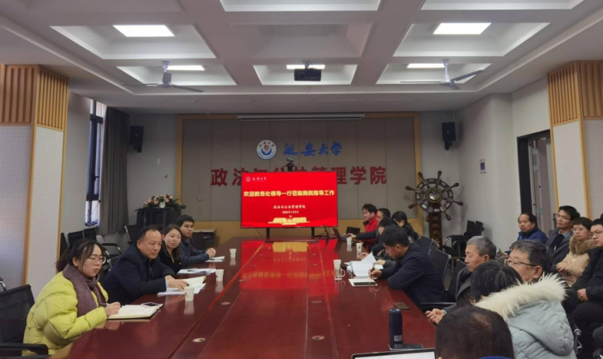 概况:2025年1月9日下午,延安大学教务处王进处长一行莅临政管学院调研2025版培养方案制订情况,学院党委书记崔林立、院长常改香教授、各系主任、学科带头人、学科骨干和教师代表30余人参加了会议。座谈会由常改香院长主持。