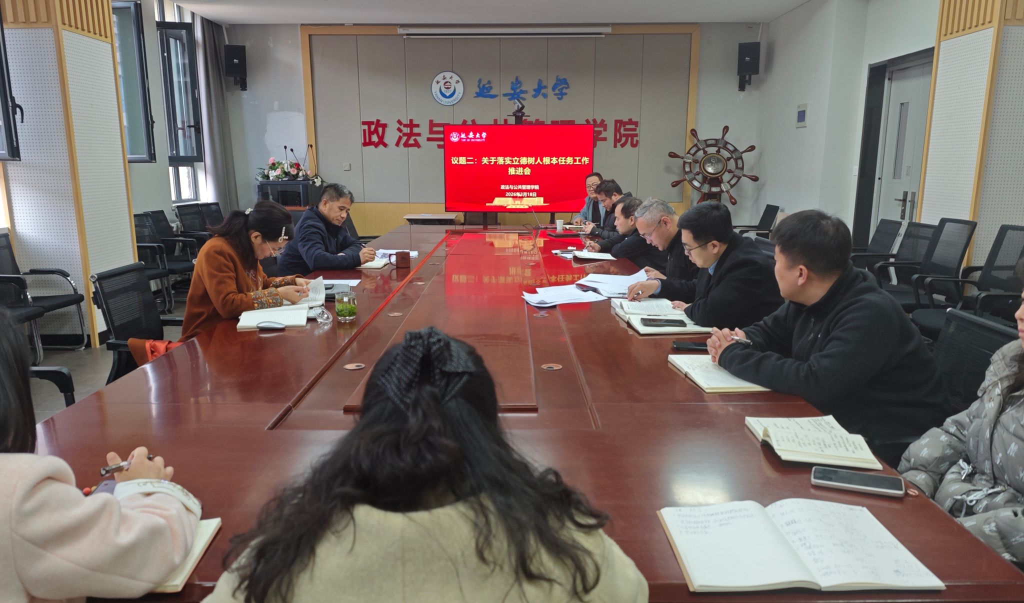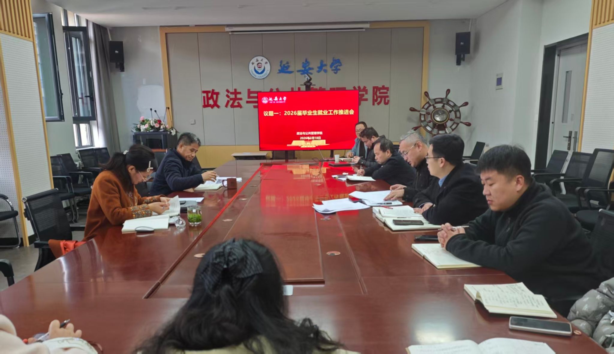 本网讯 2026年3月18日下午16时,我院在318会议室召开2026届毕业生就业工作推进会暨统筹推进人才培养高质量发展推进会,学院党政领导班子成员、2026届毕业生班主任参加,会议由崔林立书记主持。